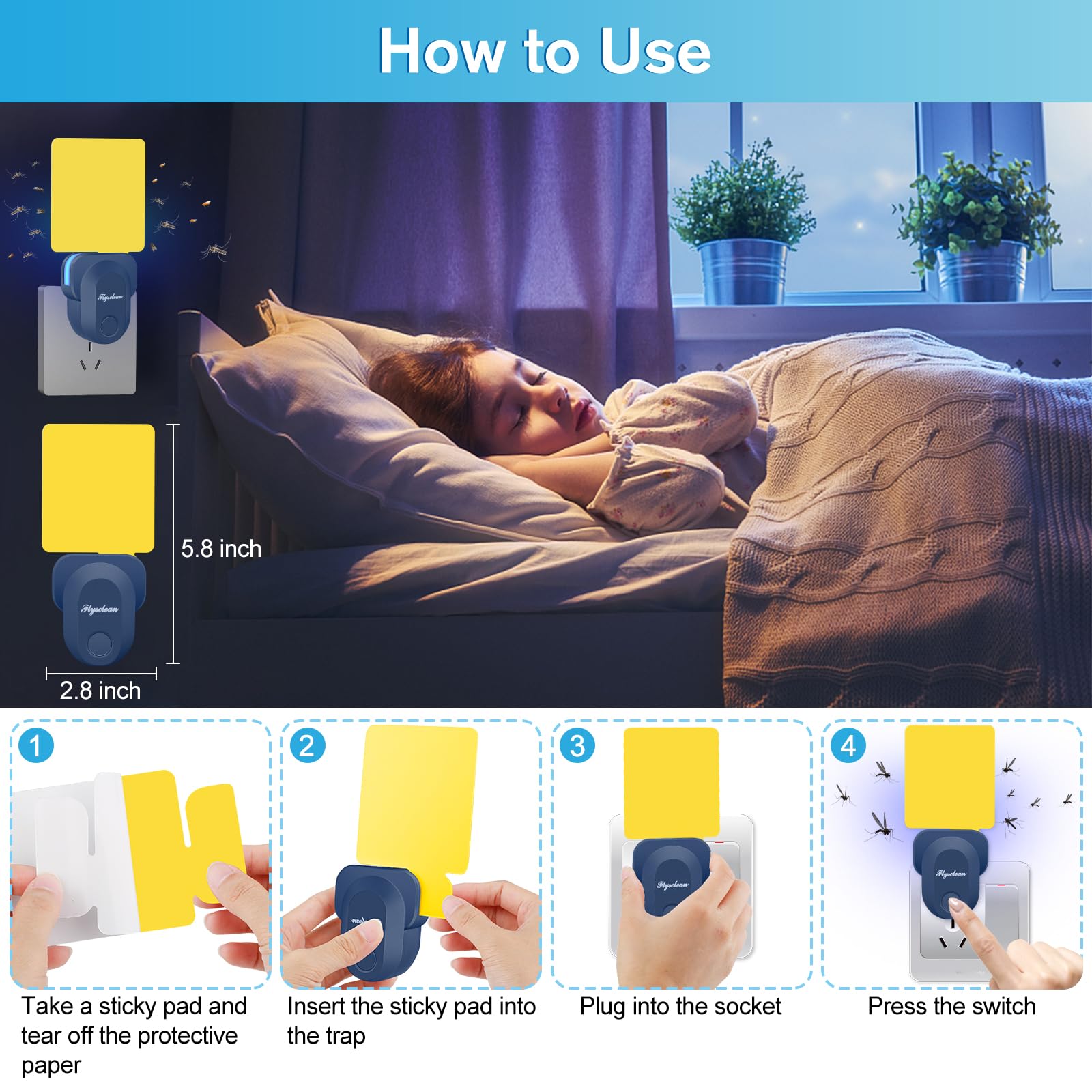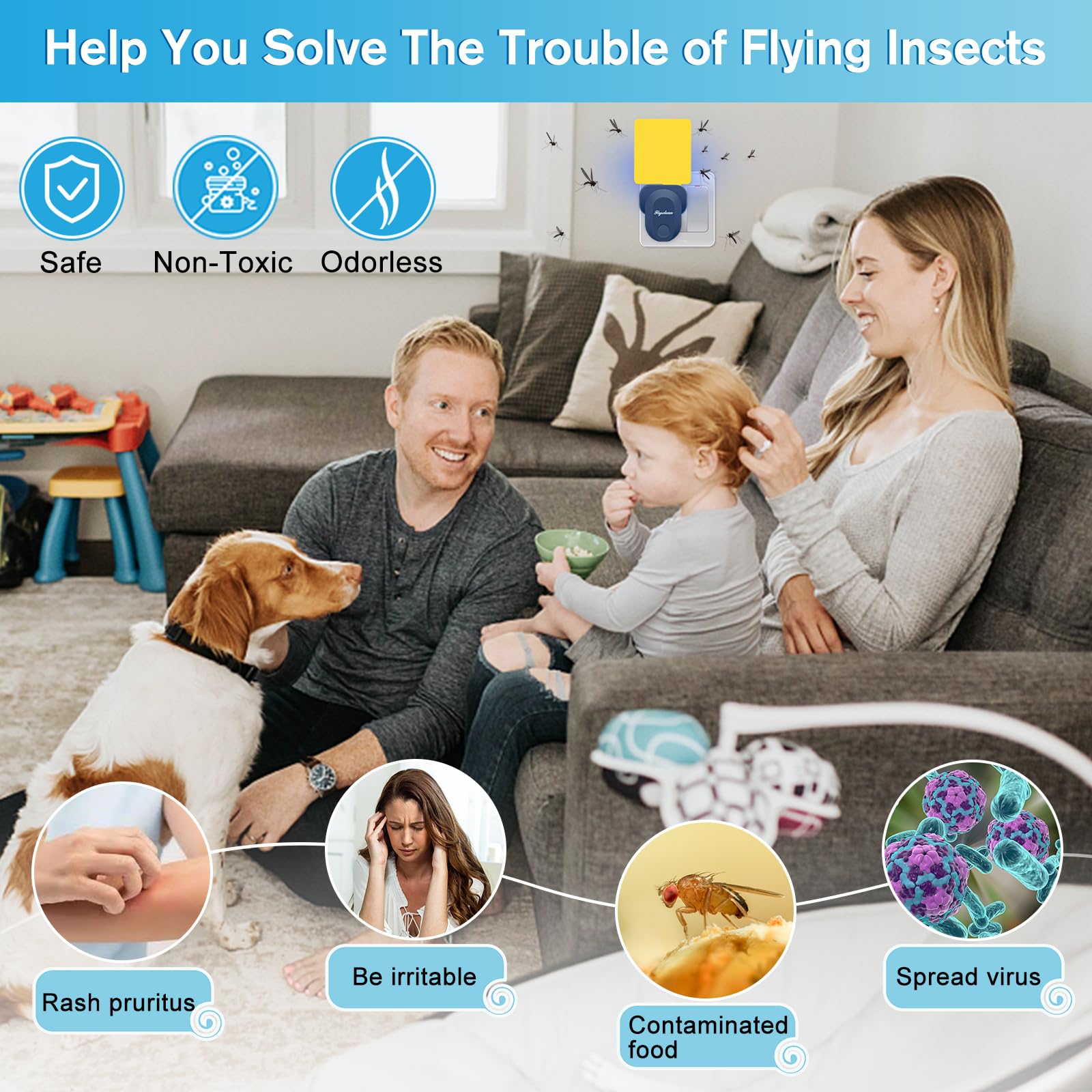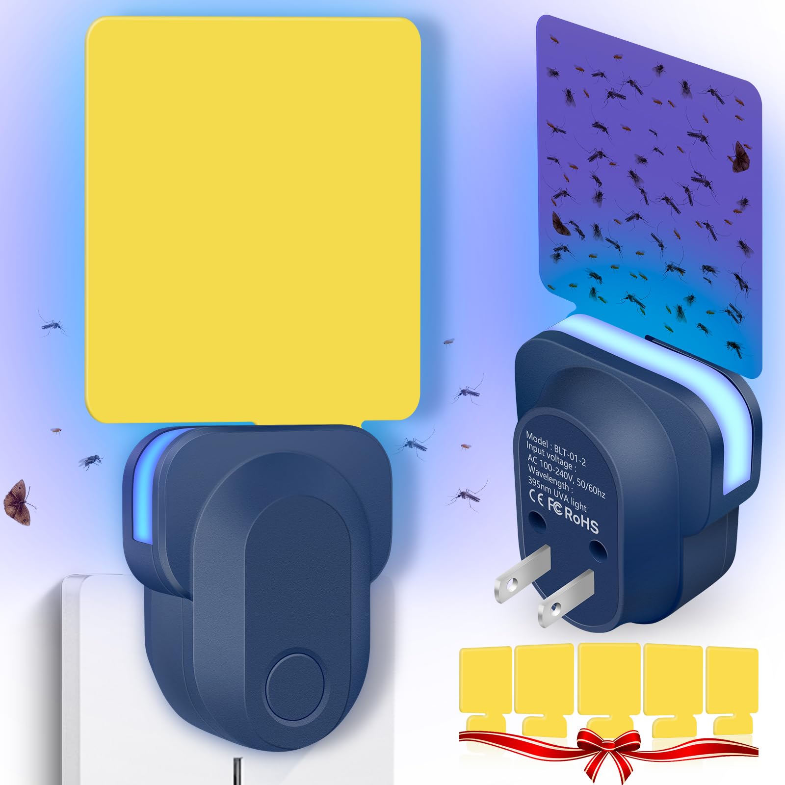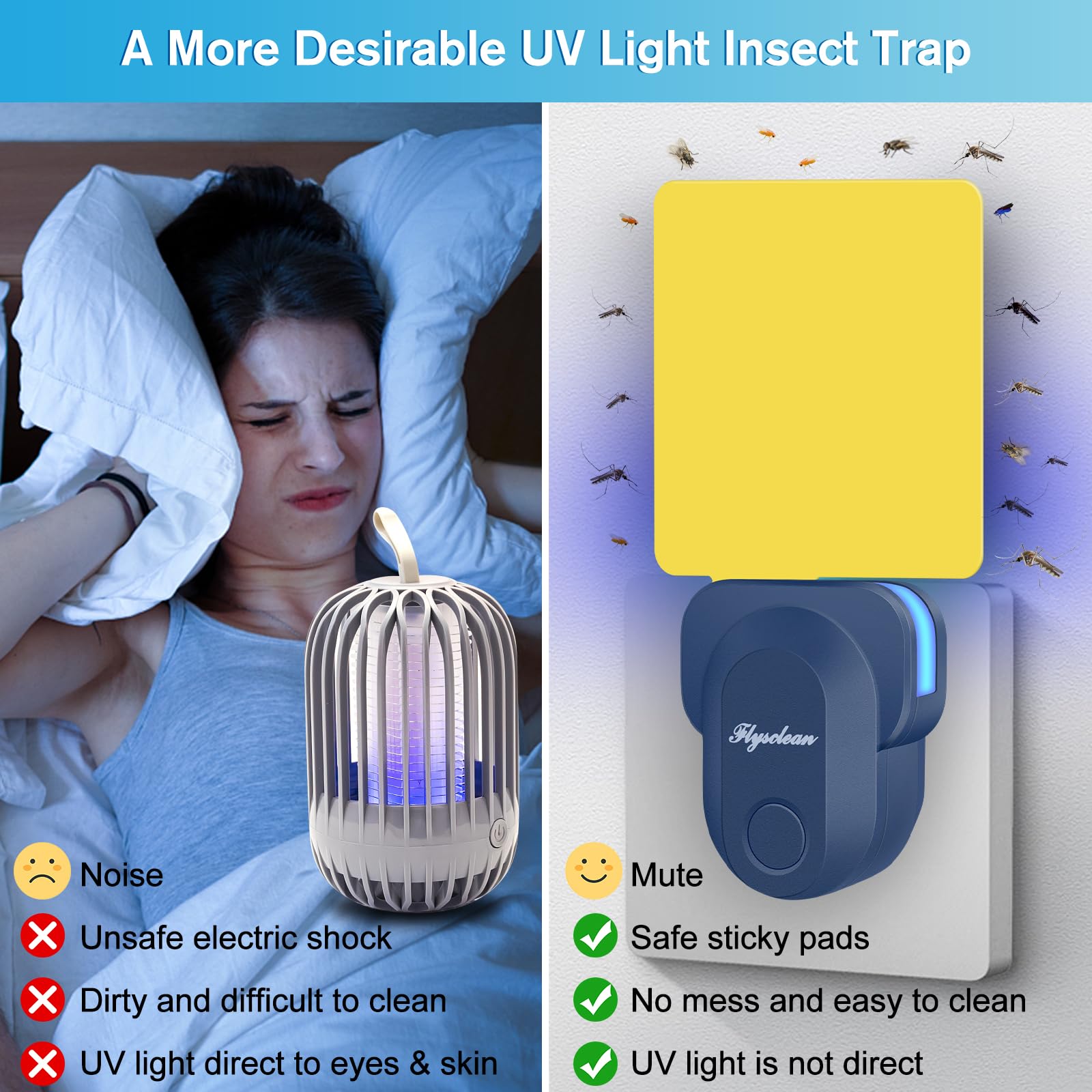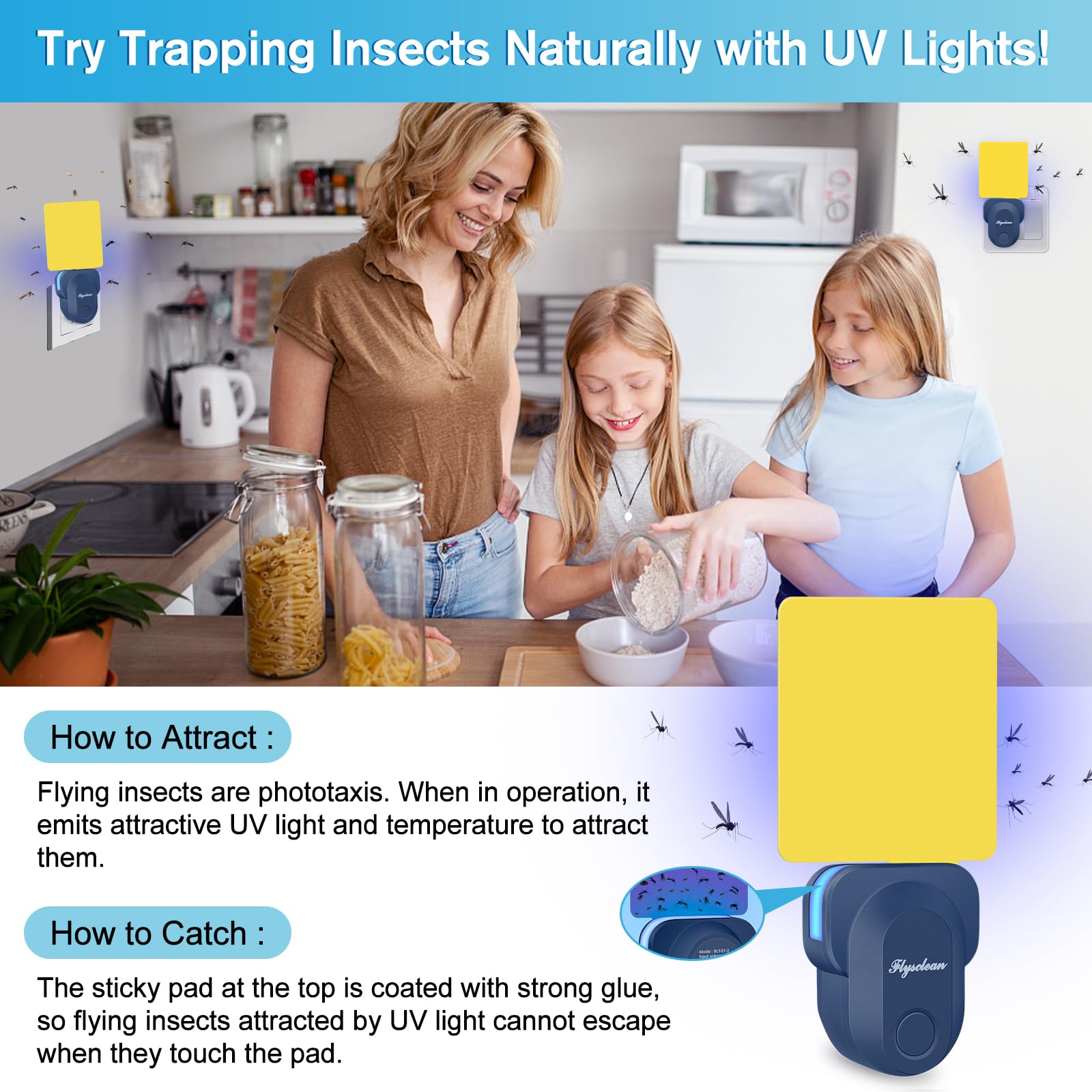 JNKNT Indoor Plug-in Flying Insect Trap, Gnat & Fruit Fly Traps for House Indoor, (1 Device + 5 Refills) Non-Toxic UV Light Fly Trap, Gnat Killer Bug Catcher for Flies, Gnats & Moths – Deep Blue