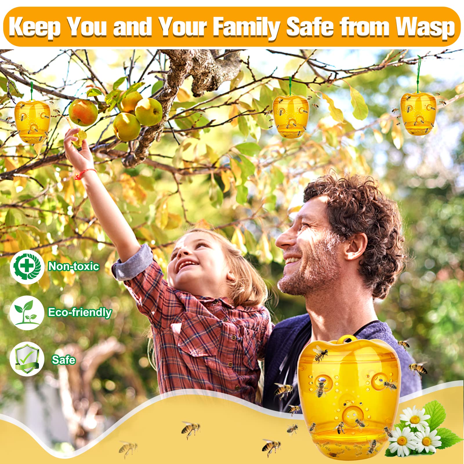 Hang it in place using the nylon cord that came with the wasp trap, the trap will be more effective at attracting and catching wasps. Be careful not to hang it too close to where you and your family and friends meet and play.