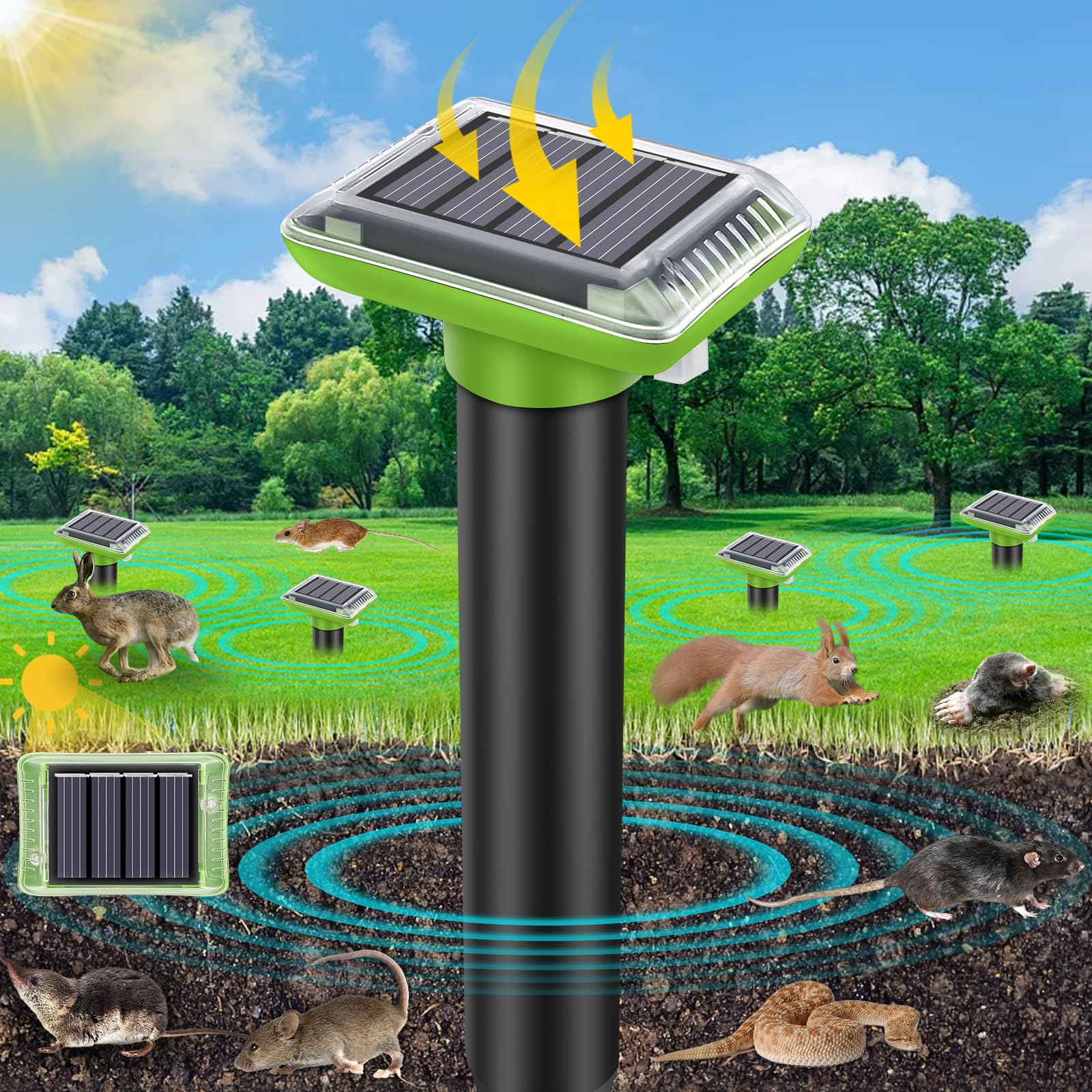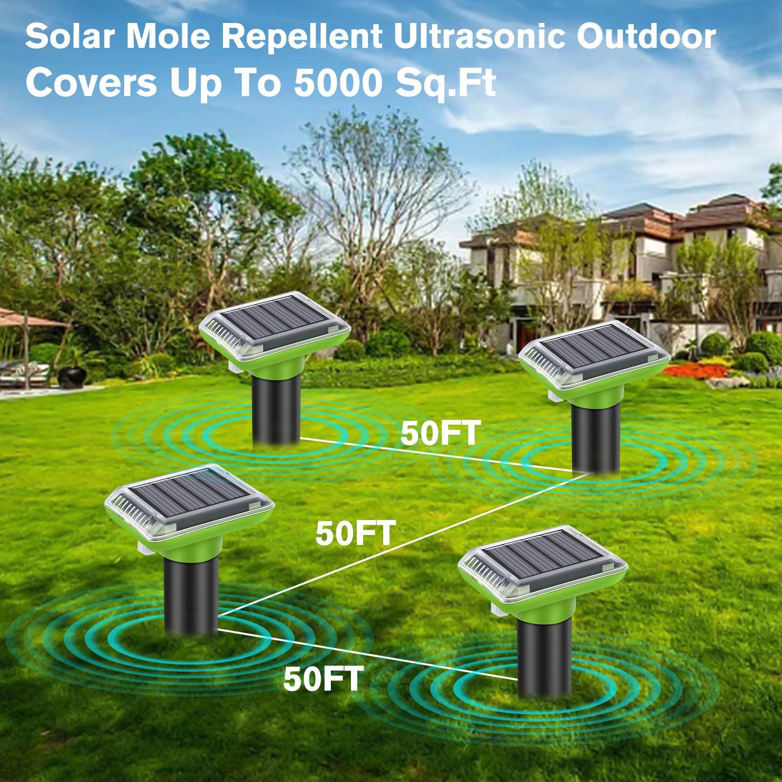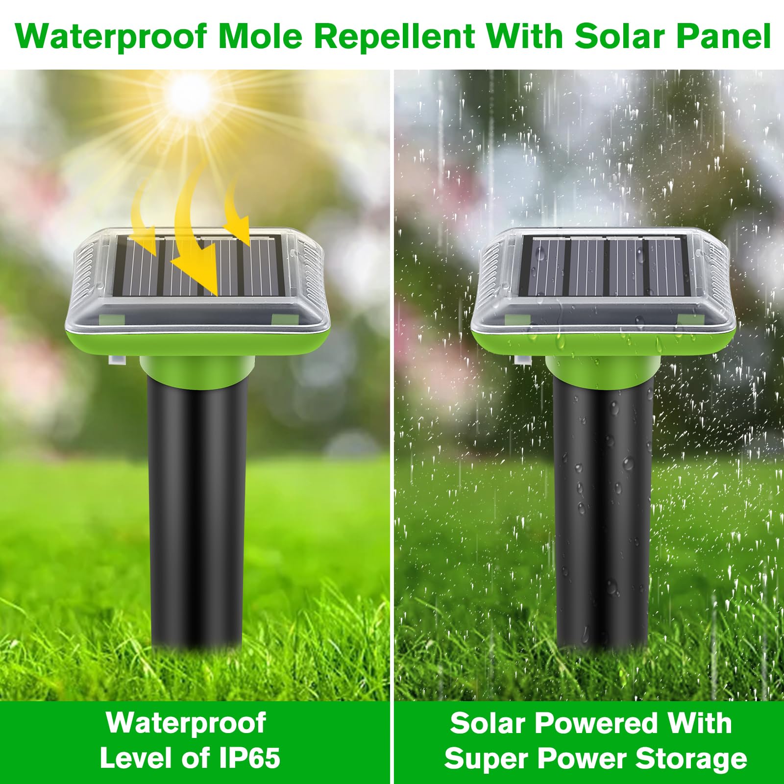 Ultrasonic Mole Repellent Outdoor, 1 Pack Gopher Repellent Solar-Powered for Lawn Yard and Garden, Waterproof Mole Killer Traps, Effectively Repels Gopher Vole Groundhog Snake, Green